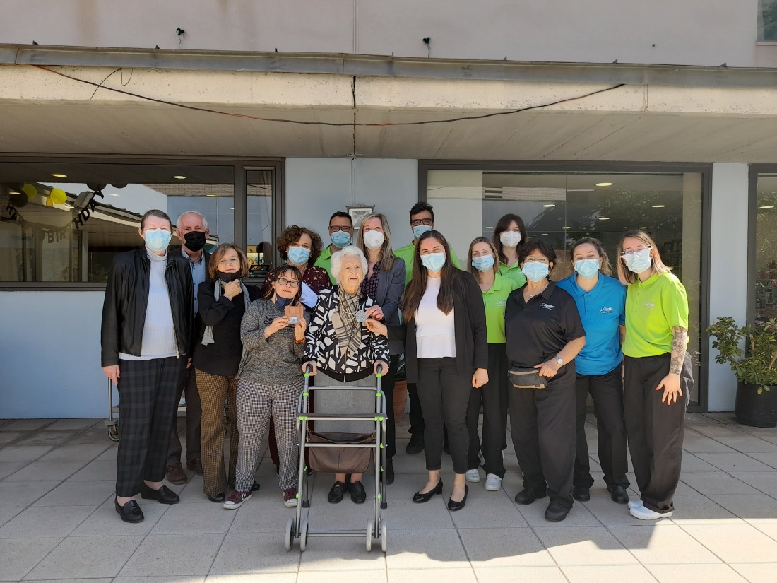 Avui es fa entrega de la medalla centenària a la sra. Maria. Hem realitzat un homenatge, on la Generalitat de Catalunya ha lliurat aquesta medalla commemorativa per haver complert cent anys. En aquest acte també ha estat la família i els treballadors. On ha sigut molt emotiu!