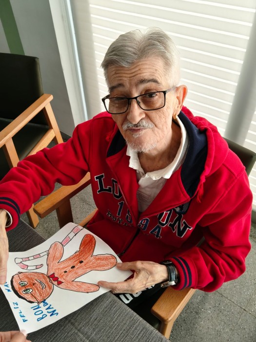 Cada residente recibió su propio dibujo, pensado especialmente para él o ella, convirtiendo un simple papel en un mensaje lleno de ilusión, ternura y cercanía. Los rostros de sorpresa, las sonrisas y la emoción vivida en ese momento nos recuerdan que los pequeños gestos pueden generar una enorme felicidad.
