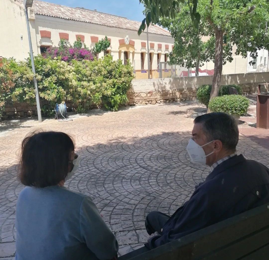 Amb aquest bon dia que fa, aprofitem per passejar i compartir experiències al jardí del centre.