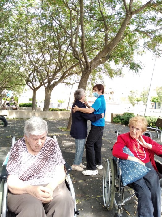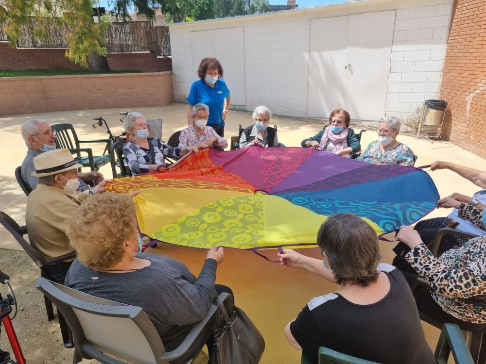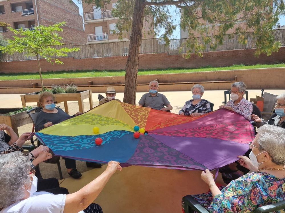 Avui per un costat hem aprofitat per estrenar el paracaigudes i per un altre he sortit a la plaça a prendre l'aire i a fer tertúlia!
