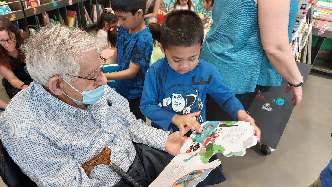 Aquest matí els nens i nenes de P5 de l'Escola Aldana ens han vingut a buscar per anar a la biblioteca.