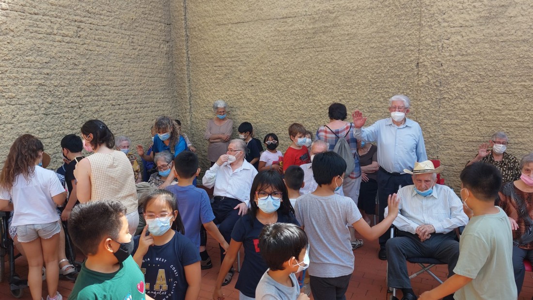Aquesta tarda hem jugat a jocs tradicionals (al mocador i al joc de les cadires) amb els alumnes de 3r de primàra de l'Escola Aldana.