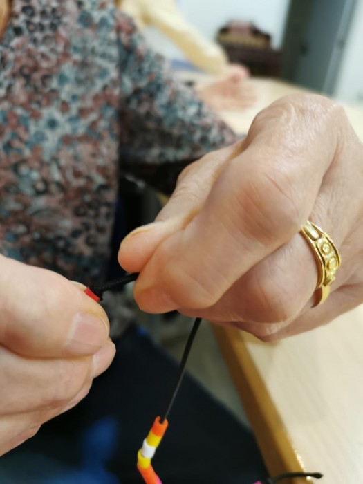 Al centre de dia han fet un taller de manualitats, on han fet polseres. Es treballa la motricitat fina.