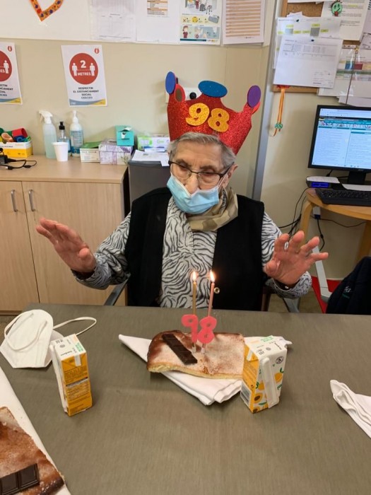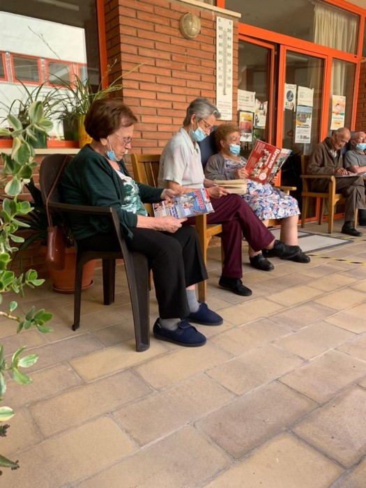 La setmana passada vam celebrar l'aniversari de la Sra Maria!! per tal de poder païr la coca tant bona que ens va portar la seva família, després de berenar, ens vam assentar a l'hombra del portxo a llegir.