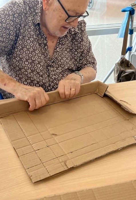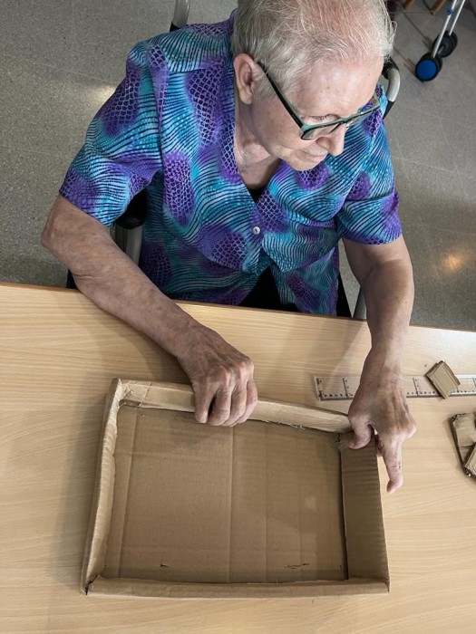 Fem un treball manual, les persones residents construeixen una capsa de cartó. On fomentem el sentiment d'utilitat i l'autoestima pel treball dut a terme.