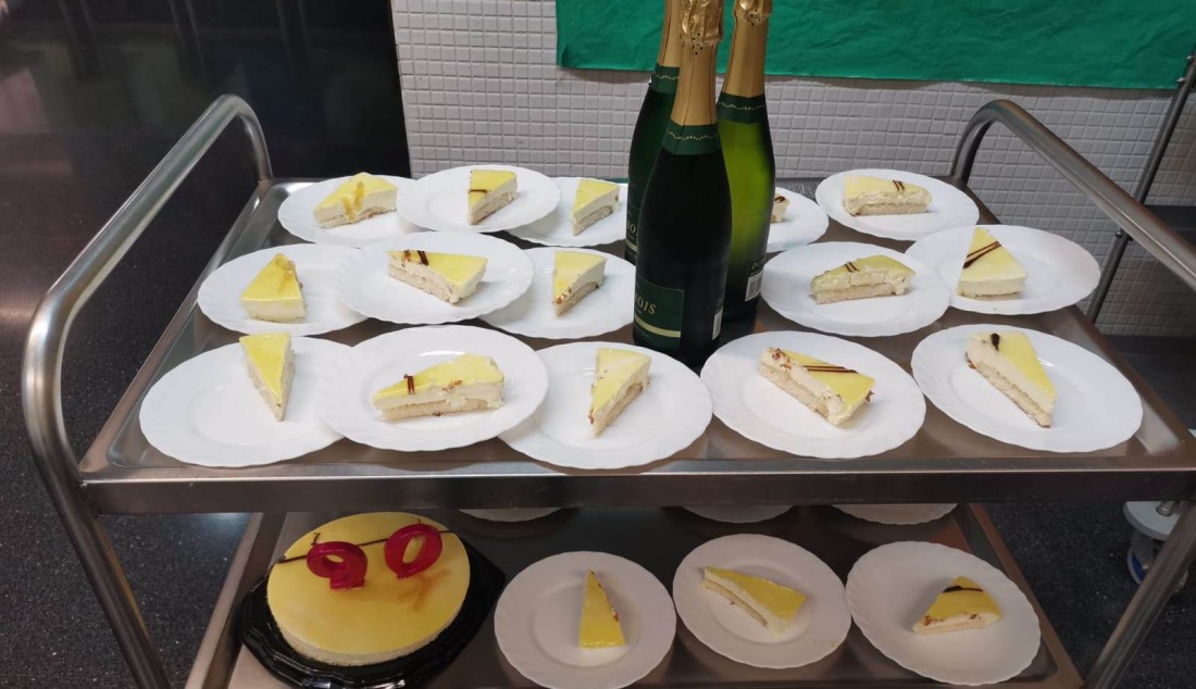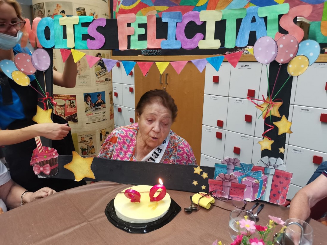 La sra. Isabel fa uns dies que va cumplir els 90 anys, però ha sigut avui quan ha portat pastís i una mica de cava per celebrar-ho tots junts!
