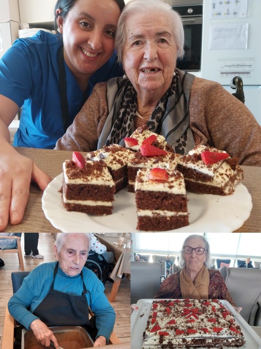 Mireu que artistes estan fetes aquestes xiques del menjador Ermita!! Dissabte van fer un pastís de xocolate en crema de mantega i freses. Que bo!!