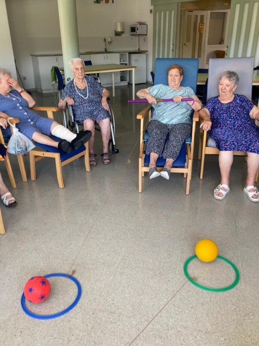 Avui en teràpia Ocupacional treballem la coordinació bilateral amb moviments simètrics dels braços això per tal de mantenir habilitats i aconseguir participació activa a les AVD