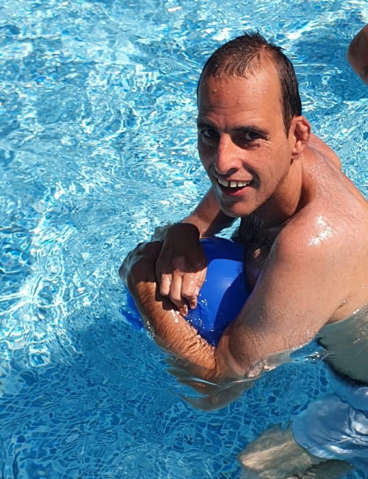 Sessió de relaxació a la piscina. Tots els residents i totes les residents, acompanyats dels nostres monitors i monitores, disfruten cada dia d'una estona a la piscina. Una bona remullada i una mica de sol sempre va bé pel nostre estat d'ànim.