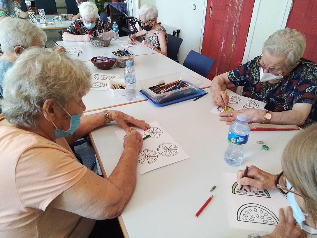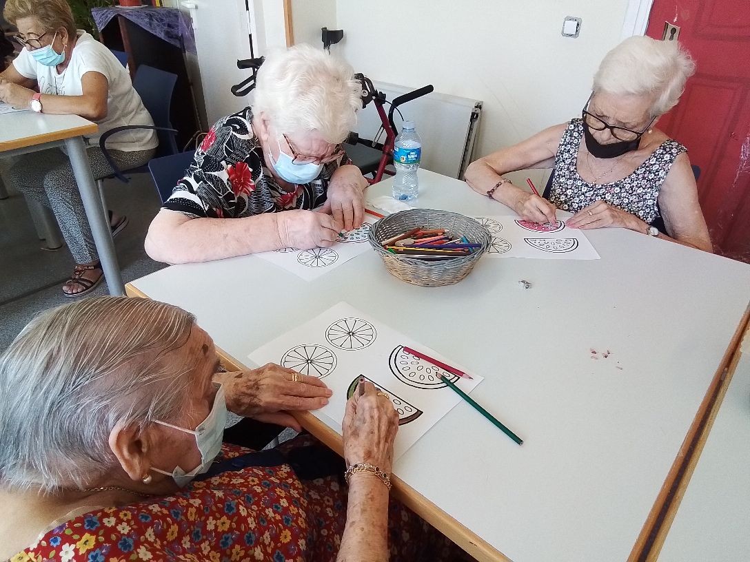Pintando dibujos de verano y de frutas para los portavasos.