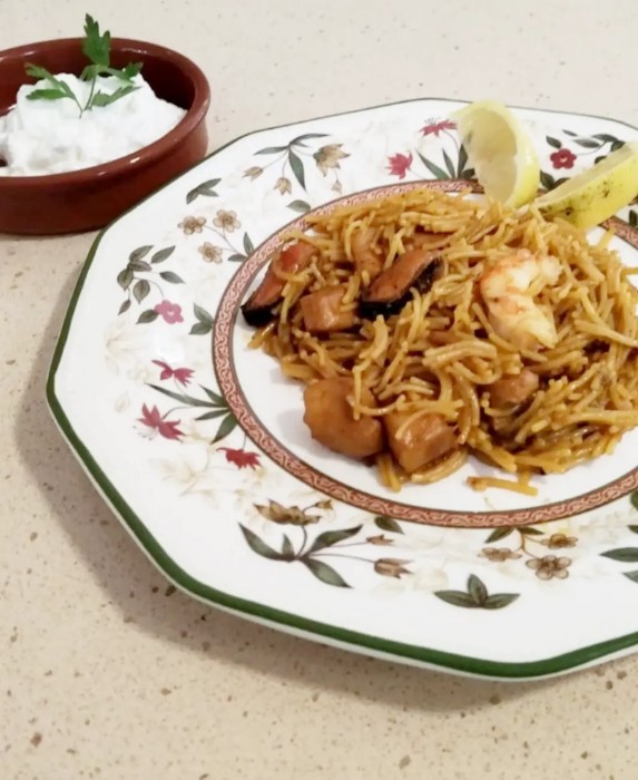 Entremès, fideuà amb allioli i profiterols de nata amb xocolata.