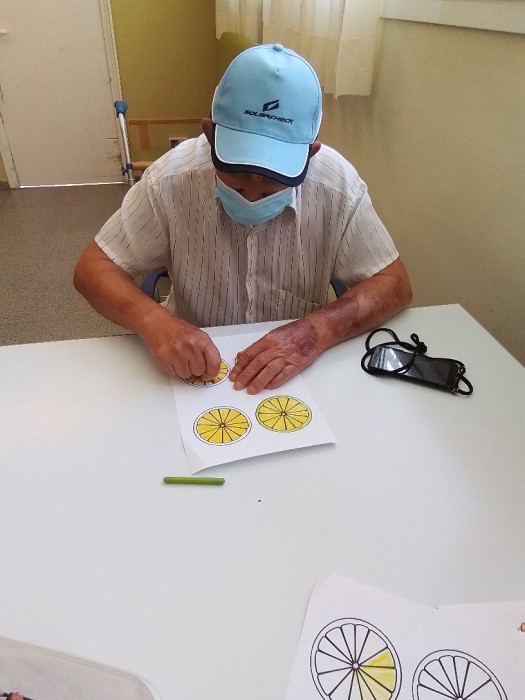 Los usuarios muy entretenidos pintando los dibujos para los posavasos.