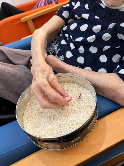 Realitzem un taller d'estimulació sensorial, on es realitza amb diferents textures. On ajuda a la persona a sentir i discriminar.