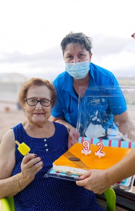 Avui també hem celebrat l'aniversari de Carme, ha fet 92 anys!!! La seva família li ha portat aquest gran pastís!!!!