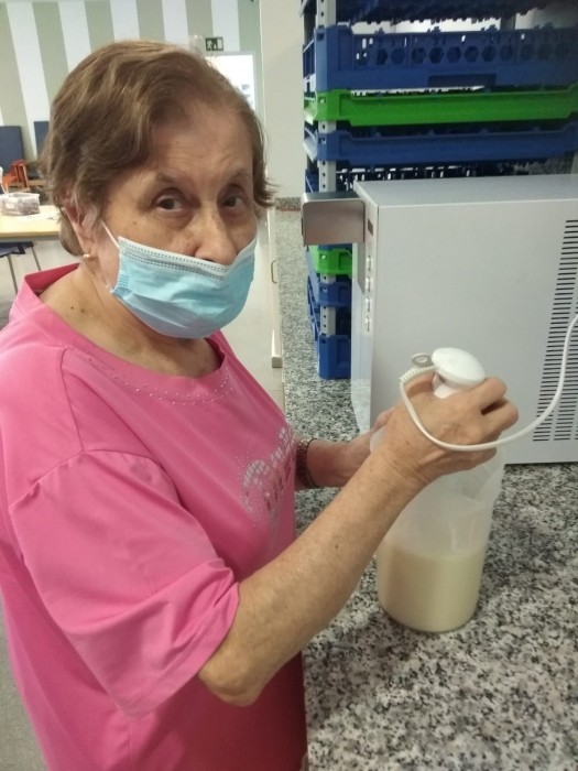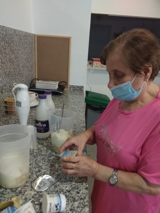 En el taller de cuina, la Sra. Victòria ha preparat un batut de fruites. On li agrada i es treballa el sentiment d'utilitat.