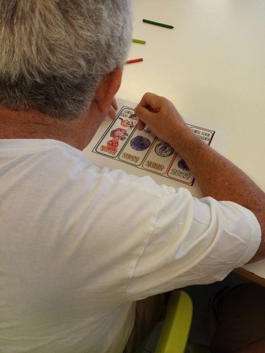 Avui, els nostres residents i les nostres residents han estat pintant punts de llibre, amb l'objectiu de poder-los plastificar i poder regalar a les families.