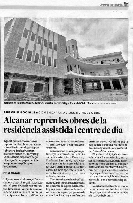 Aquest mes de novembre es reprendran les obres per acabar la residència per a la gent gran i el centre de dia d'Alcanar...