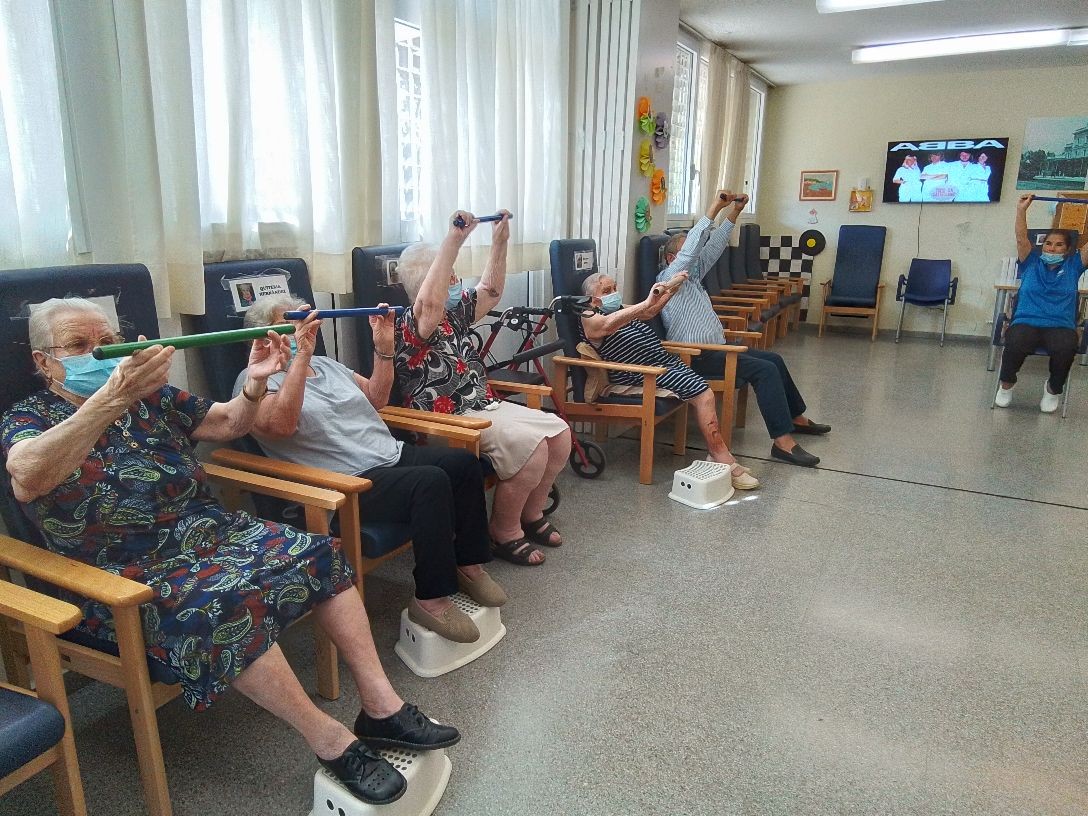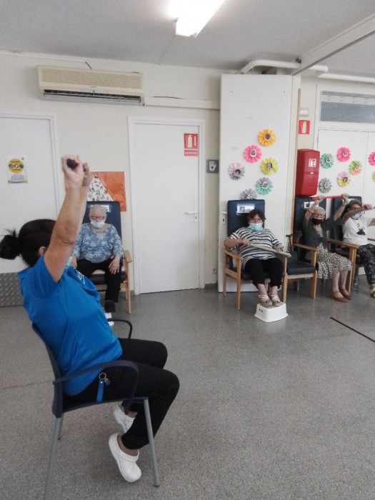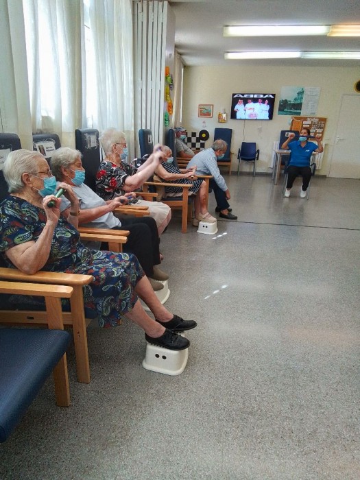 Usuarios haciendo ejercicios de coordinación y equilibrio.
