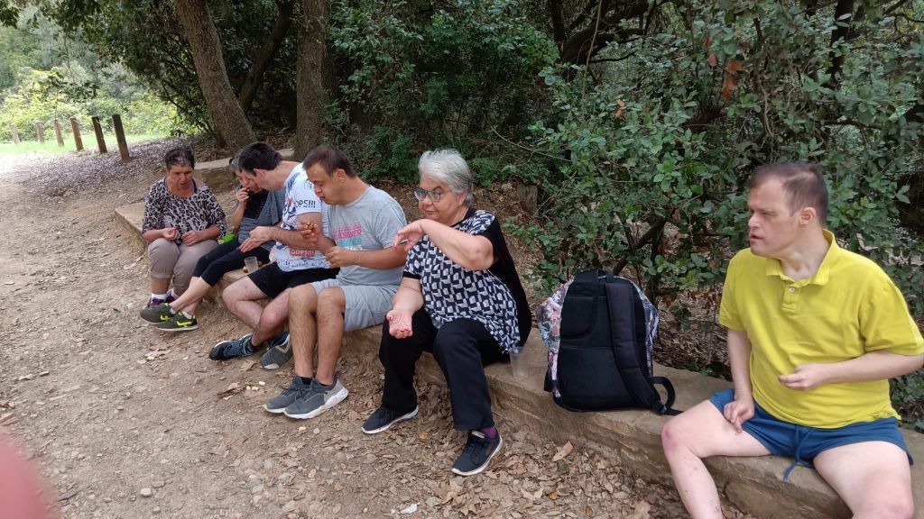 En les següents imatges podem observar 3 coses. En una de les fotografies veiem als nostres residents i a les nostres residents passejant pel bosc, exercitant les cames i oxigenant els pulmons per un bon estat físic i cognitiu. En segon lloc veiem un petit descans, on els i les residents estan recuperant força i compartint una estona entre companys i companyes. I per últim, una imatge preciosa feta des de la residència, a l'arribada de l'excursió, una posta de sol molt maca que necessitava ser captada.