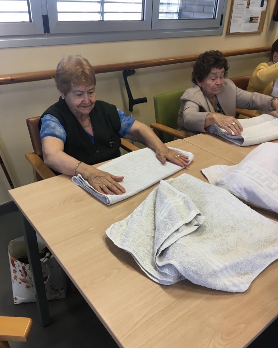 Realitzem taller de tasques vocacionals! Amb l’ajuda dels avis i àvies tenim tota la roba i tovalloles ben plegades! Amb les activitats de la vida diària potenciem la mobilitat i psicomotricitat!