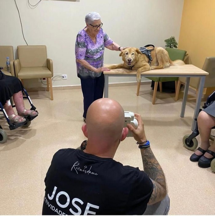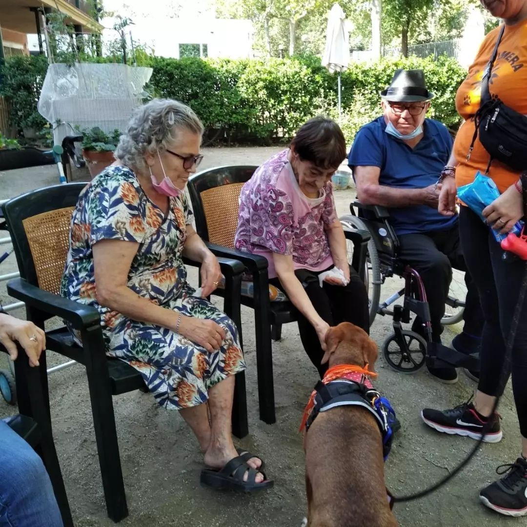La teràpia amb gossos és una pràctica habitual als diferents centres de L’Onada. En col·laboració amb entitats com Recuérdame Alzheimer, per exemple, aquest tipus de teràpia porta a les residències un punt de llum i les persones usuàries gaudeixen d’un dia diferent interactuant amb els gossets que porta l’entitat.
