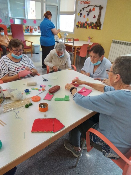 Avui a primera hora del matí, hem continuat cosint les bossetes de feltre. És un moment que els hi agrada perquè a més de treballar fan tertulia entre elles.