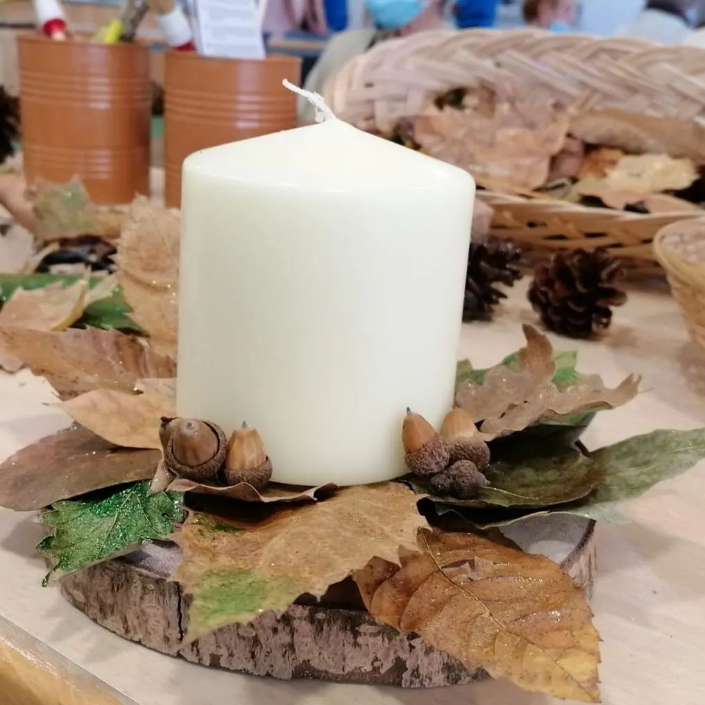 Avui al Palau de la Música hem fet Mandales de tardor amb fulles seques I un centre de taula .