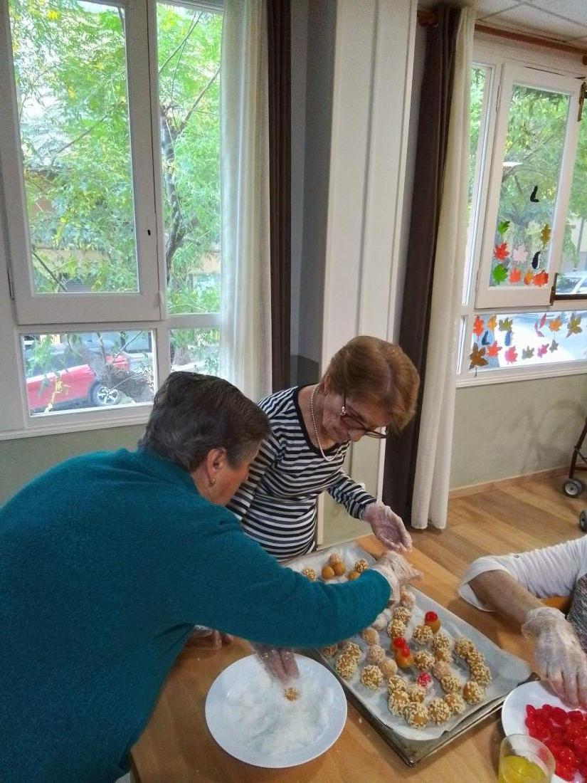 Avui dia 28 d'octubre els usuaris del centre de dia han elaborat panellet, també hem recordat els menjars típics de la castanyada i les curiositats que comporta aquest dia.