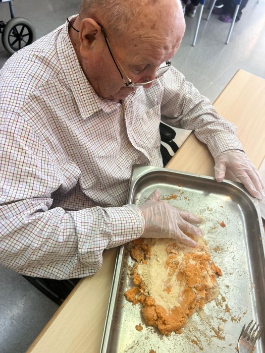 Gaudim fent el taller de cuina, per la Castanyada elaborem diferents panellets.