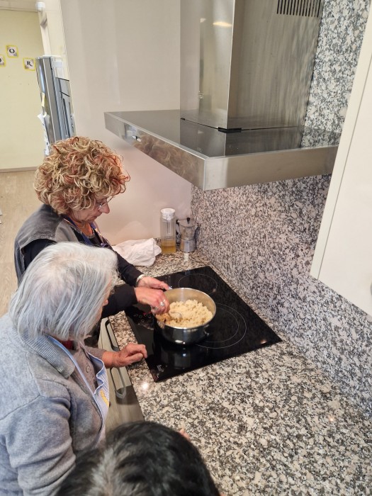 Recordem quan veiem a la família fent els torrons. Primer vam ficar tots els ingredients a l'olla, o fam anar remenant i després ho vam aplanar.