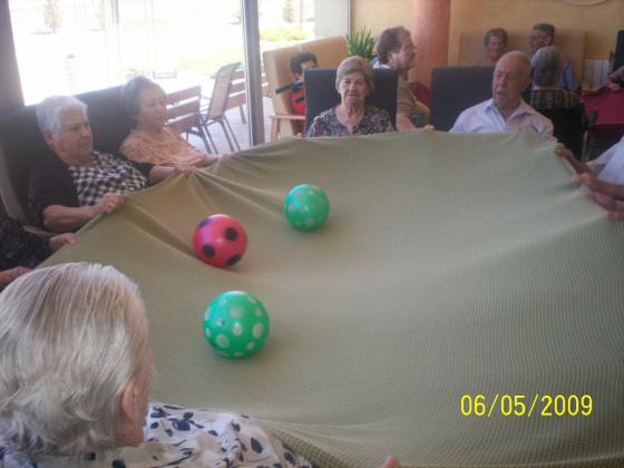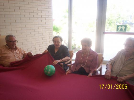 Com que ja s'acosten els Ebre límpics de la Sènia, treballem els valor de trballar en equilp. Tots a una. Hem fet grups de 6 avis, els hem donat un llençol gran i una pilota al centre: l'objectiu era llançar a l'aire la pilota i tornar-la a recollir, que ha passat? Que com que han començat anant per liure, és a dir, cadascú a la seva els queia la pilota fins que ells mateixos han arribat a la conclusió que s'havien de coordinar i anar tots a l'hora. A la vegada que hem rigut i ens ho hem passat bé, ens n'hem adonat l'important que és treballar cooperant i no competint! Una per a tots i tots per a una!!!