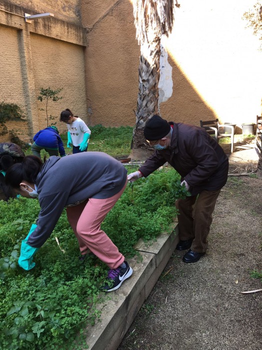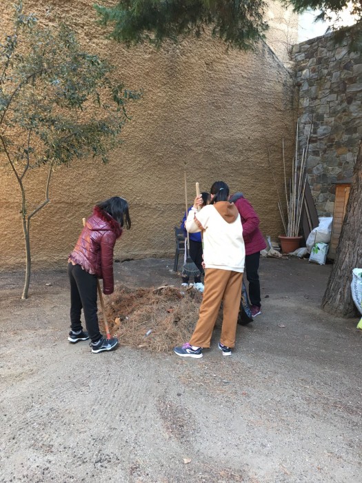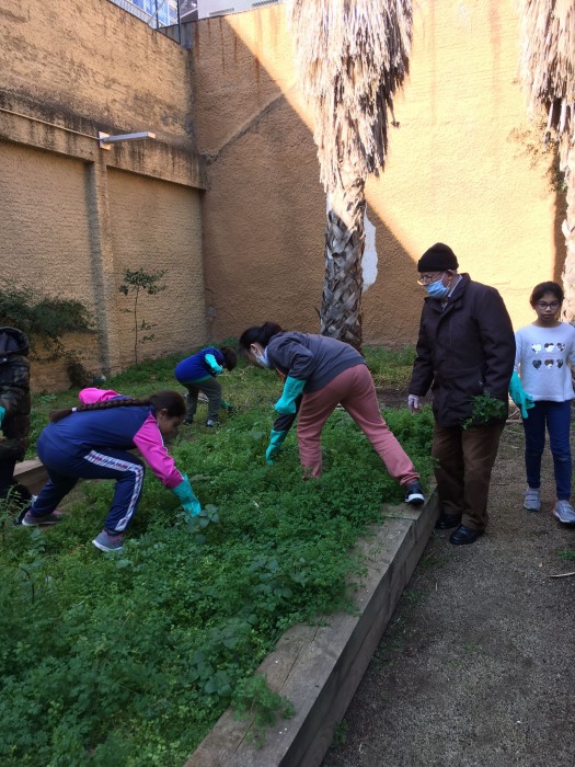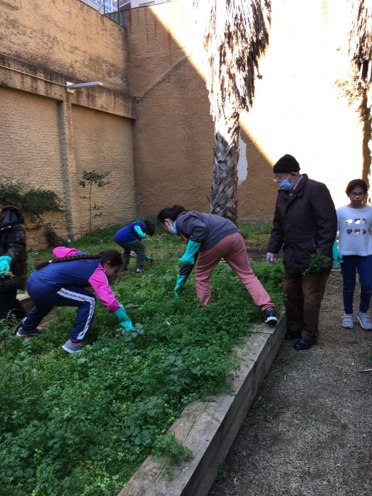 Aquest matí els alumnes de 5è ens han ajudat a netejar les males herbes del jardí