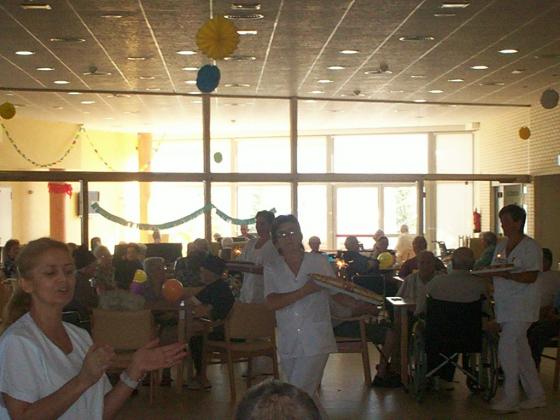El divendres vam cel.lebrar els aniversaris dels residents que havien fet anys al mes d'Agost, a banda de la tradicional corona i fotografia, aquesta vegada vam incorporar els jocs amb globus, mentre algunes companyes tallaven els deliciosos pastissos que ens van fer les cuineres.. unes altres vam fer petar els globus amb el pompis, a alguns els feia una mica de por, els altres cridaven abans que esplotes el globus, algun atac de riure.. però ens ho vam passar molt bé, mireu les cares d'alguns resident!!! Moltes felicitats a tots!