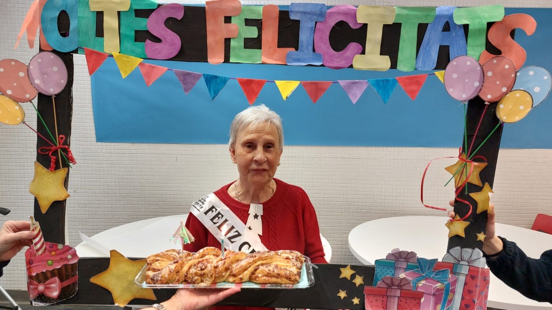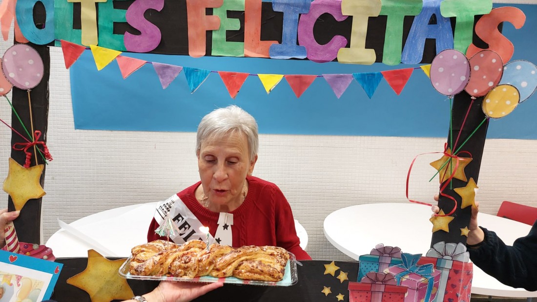 Avui la sra. Rosa cumpleix 84 anys i ha portat berenar per celebrar-ho