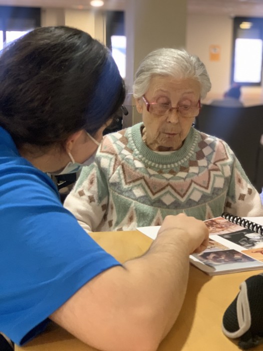 La Mercè junt amb la seva RA treballen de manera individual l'album de fotos de diferents èpoques de la seva vida. Amb aquesta activitat treballen de manera cognitiva i se la vincula amb els seus records.