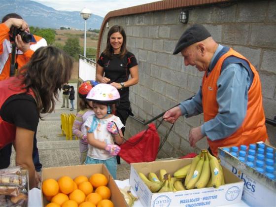 Vam preparar les bossetes d’obsequi per als participants, vam anar entregant els obsequis a cada nen conforme anaven arribant, mentre els oferíem també fruita, aigua,... ja que arribaven molt cansats! Hi havia diferents categories, alguns feien el recorregut més gran (de 4, 9 ó 15 km) i altres més petit (d’1 ó 2 km), així que van venir nens de totes les edats i de tota la comarca.