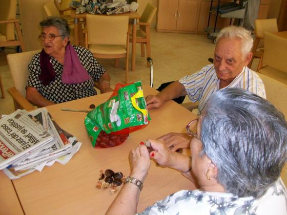Durant aquesta setmana dintre de les activitats que teniem previstes a l'Onada de la Ràpita hem fet una torrada de Castanyes.Pel matí ens vam dedicar a tallar les castanyes i fer paperines i per la tarde amb l'ajuda de les Castanyeres i d'alguns residents tots vam poder degustar castanyes torrades al foc. Ben bones que estaven!!