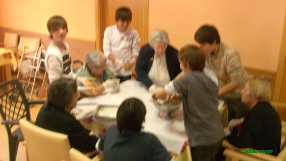 Tres dies van visitar el centre els alumnes del IES Joan Guinjoan de Riudoms de 1r a 3r d'ESO van poder fer panallets amb els avis del centre. Tots van aprendere molt i van disfrutar!! Després el dia de la castanyada una comitiva d'avis del centre els va portar a l'Institut un sefata de panallets per cada classe. Tot un èxit