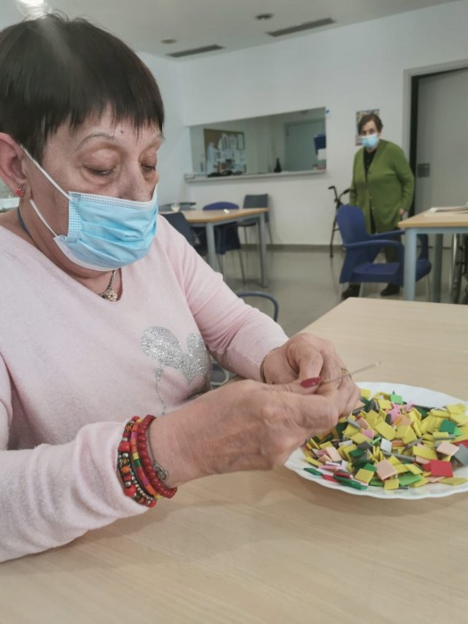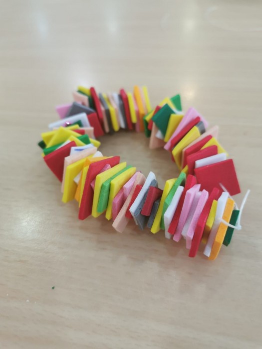 A la unitat de convivència Palau de la Música, reciclant el material hem creat unes originals polseres de colors!