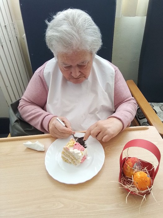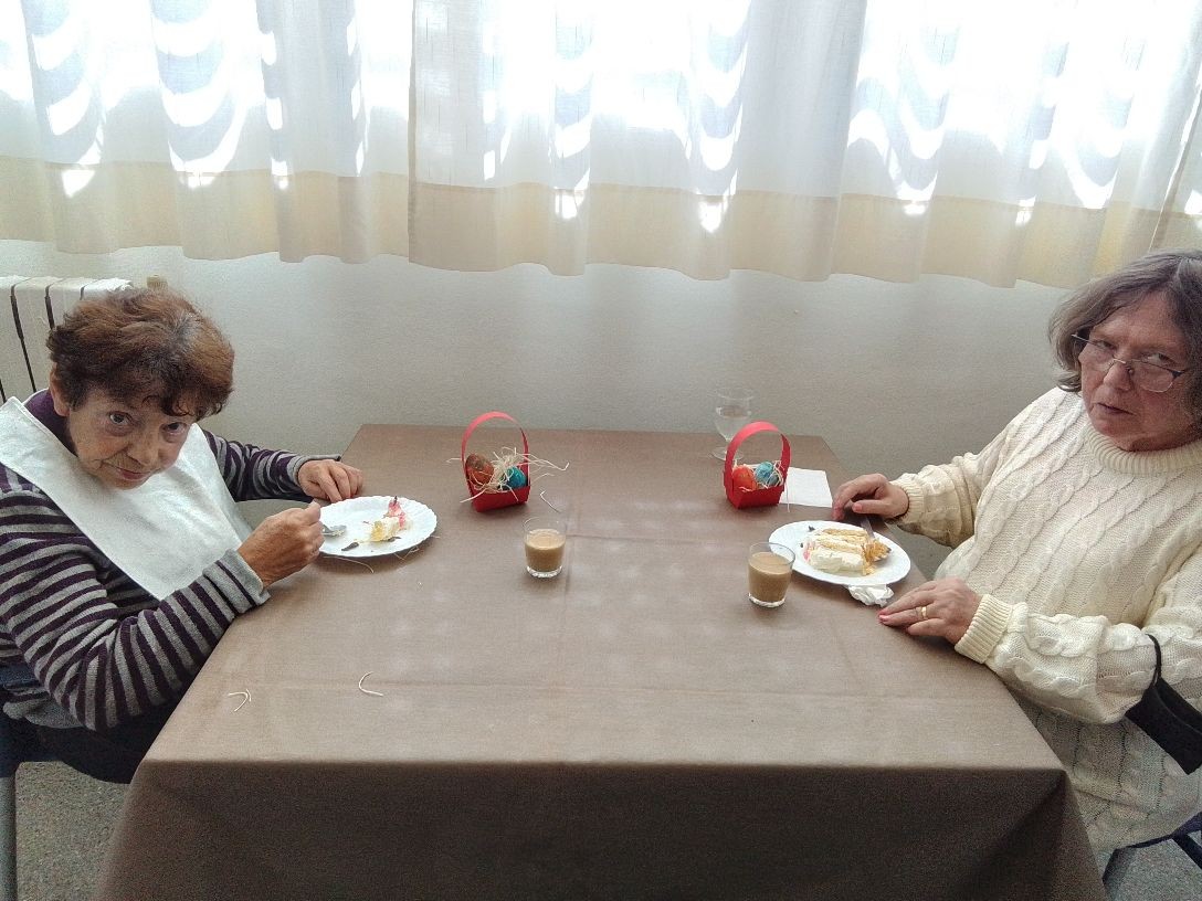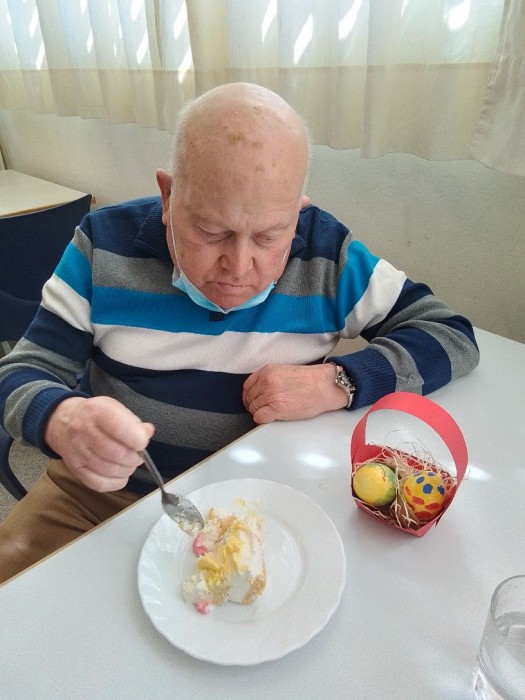 Comiendo la rica mona preparada en el centro con la colaboración de los usuarios. Estuvo deliciosa.