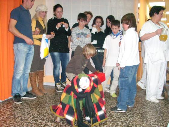 Un grup d'actors ens va fer una visita al centre de dia en el dia de la festa de families de cap d'any. Ens van interpretar cançons relacionades amb el nostre projecte "el valor dels Valors" (esperit lluitador, paciencia de les mares, estimar als que ens envolten..). totes les peces interpretades amb la tècnica de Mimo. Van acoseguir ficar-nos el cor tendret i adonar-nos que no hem d'esperar al dia de festes per retrobar-nos amb la familia, cada dia hauria de ser dia de Nadal. Una activitat totalment terpèutica per aquelles persones que perden de tant en tant el seu esperit lluitador.