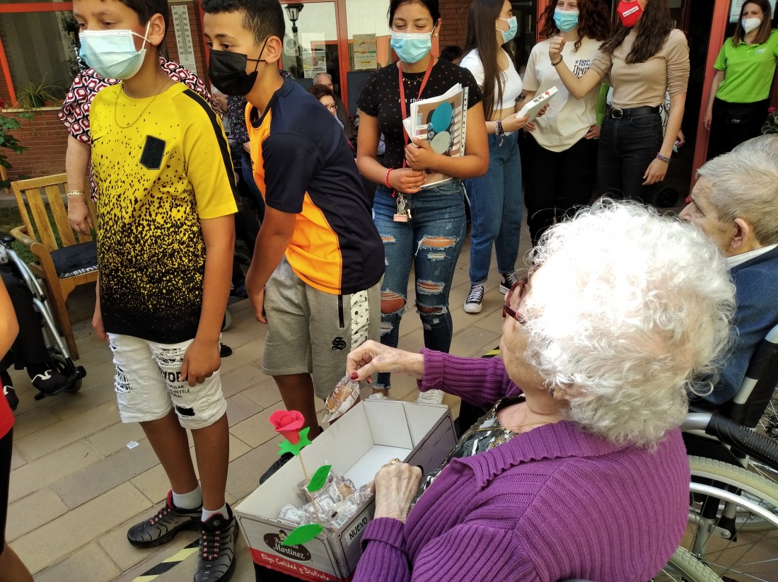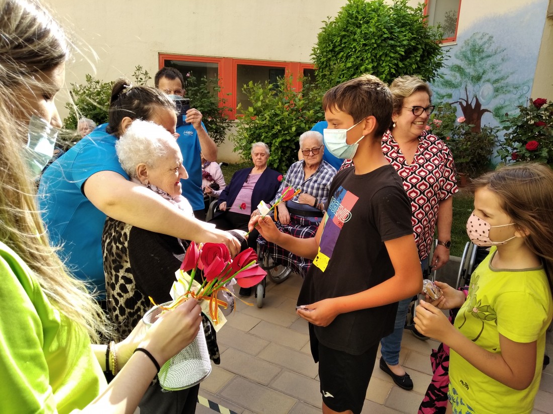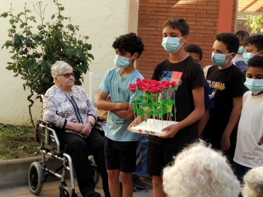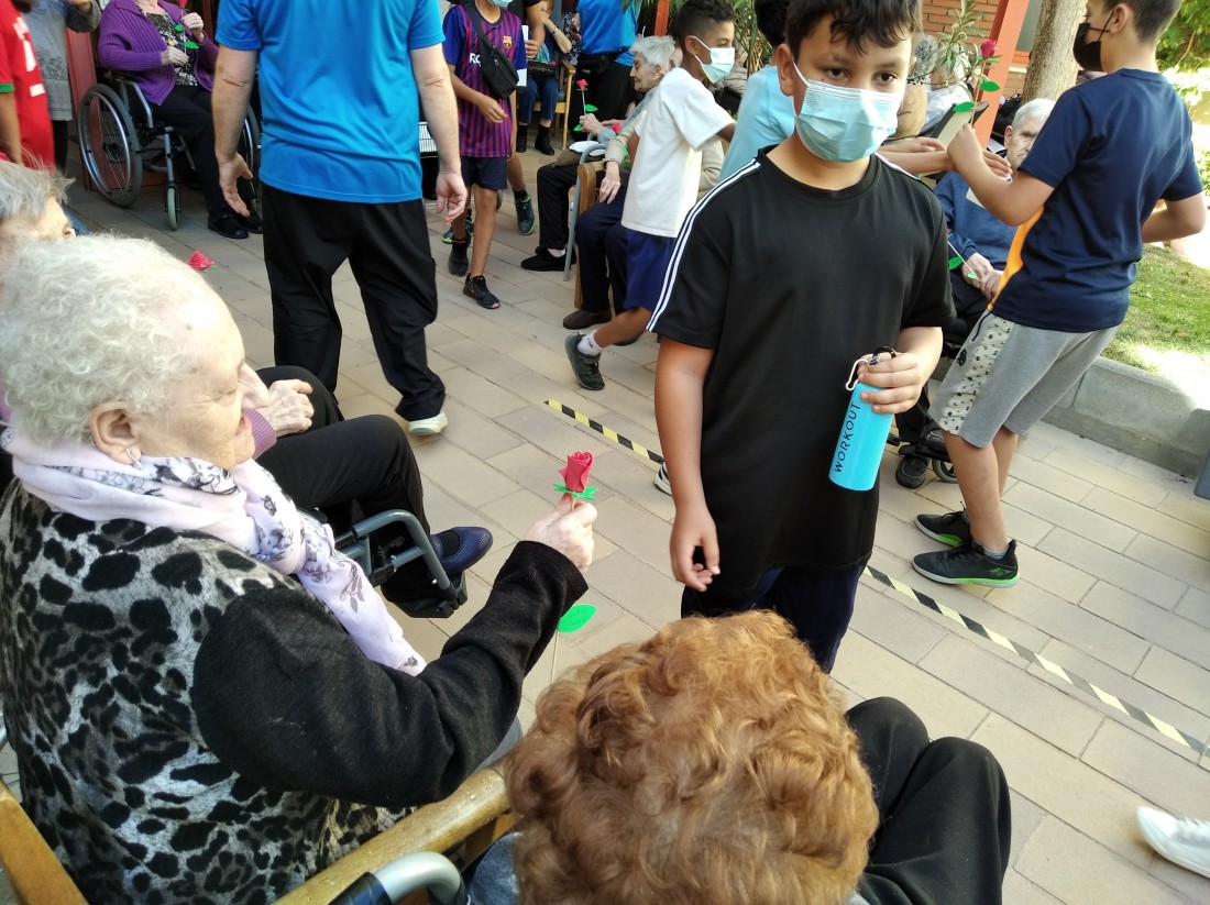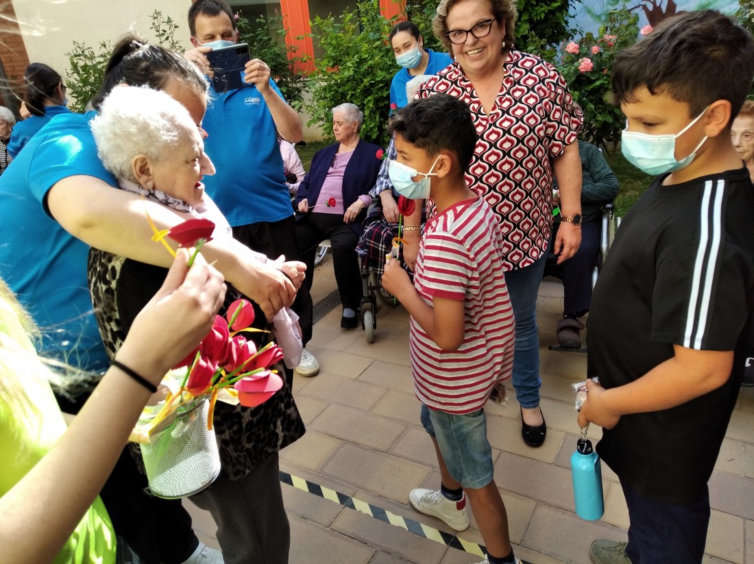 Ahir a la tarda, vam tenir la visita dels nens i nenes que reben activitats extraescolars a la Creu Roja. Vam posar en marxa el projecte "Una Rosa, Una Abraçada" i es que va ser una tarda preciosa...