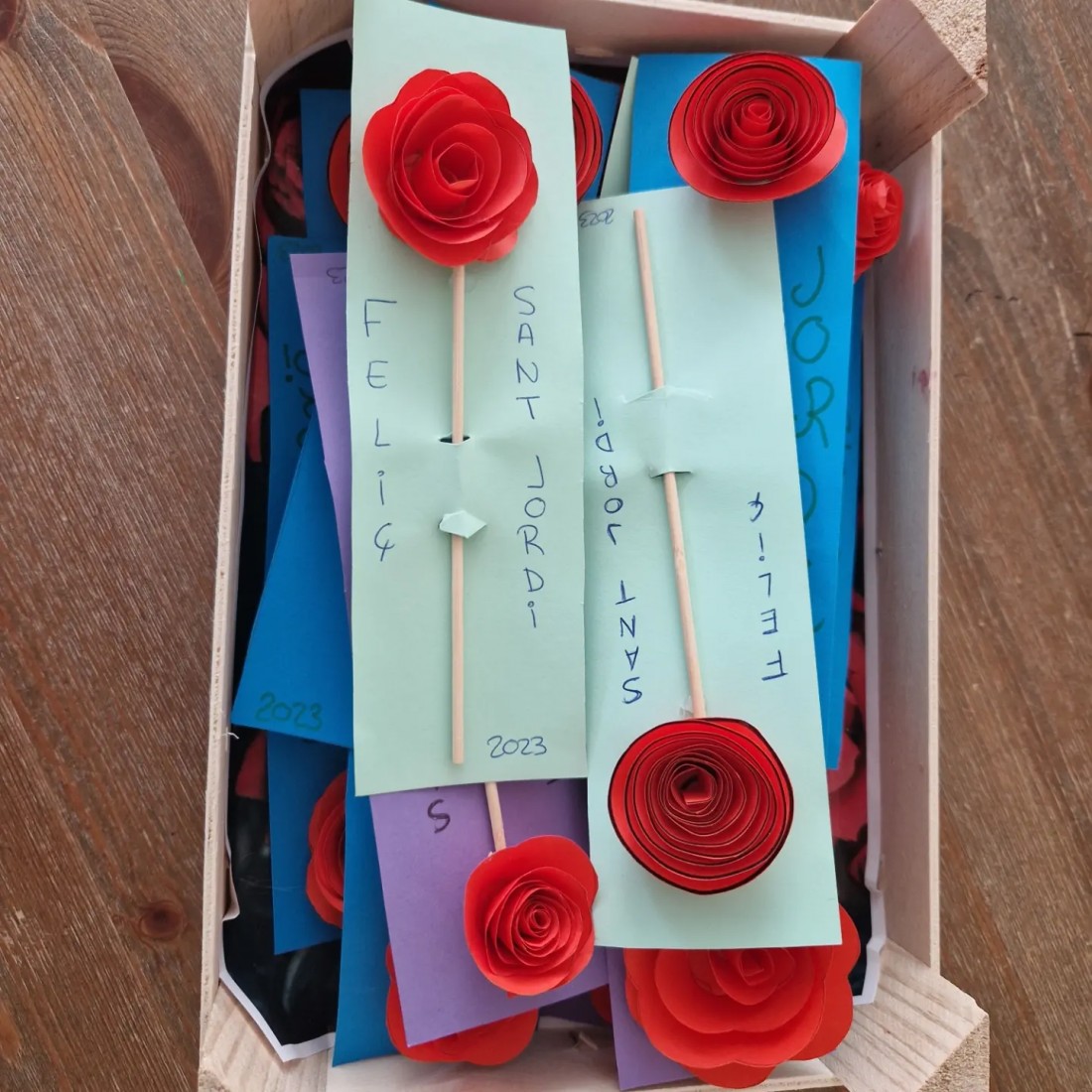 Avui repartim les roses de Sant Jordi entre totes les companyes. I ens les prenem cap a casa.