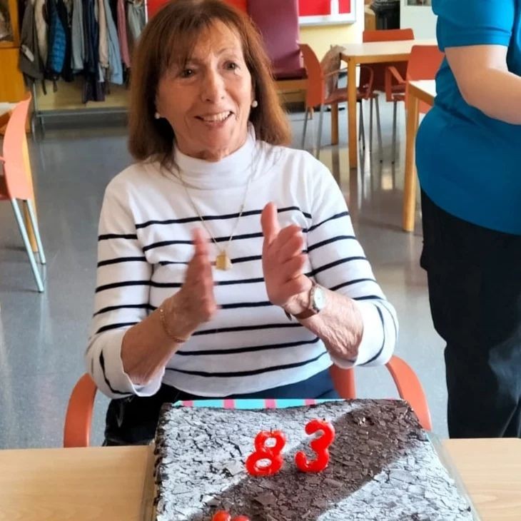 Hoy cumple años, Isabel. Que 83 años tan bien cumplidos! Una mujer guapa por fuera y por dentro Gracias por compartir este momento con nosotros y traer cada día la alegría al centro.