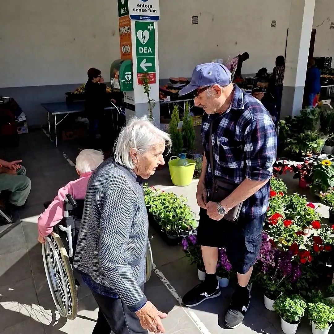 Avui com fa bon temps, aprofitem per anar a passejar i anem al mercat a veure les paradetes de flors, fruita i verdura, roba...