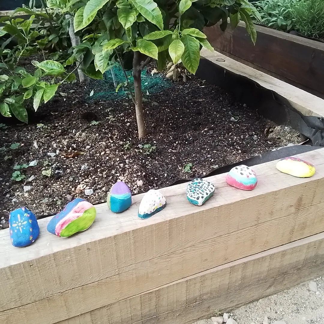 Desarrollando la creatividad en el huerto urbano. preparando decoración paredes.