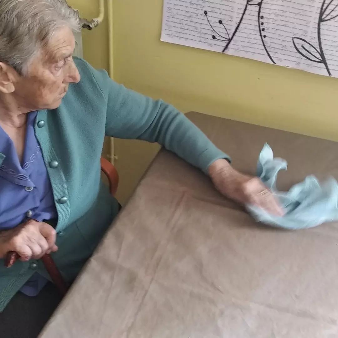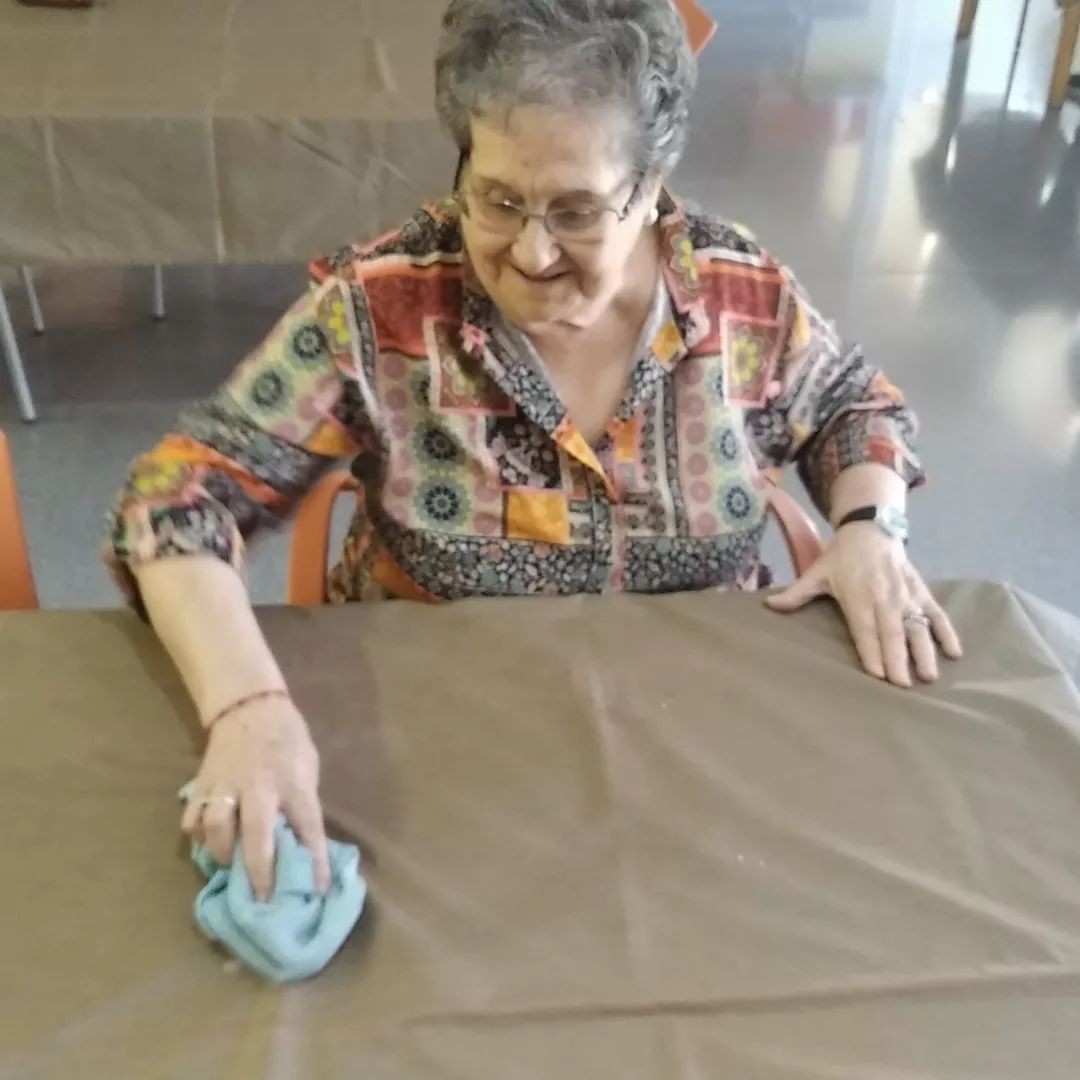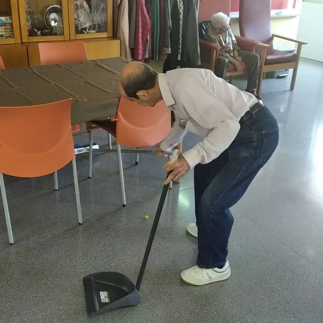 En nuestro centro de día es muy importante mantener la autonomía y la movilidad. Diariamente se potencia la participación en las tareas relacionadas con el comedor: poner las mesas, recoger los manteles y barrer.