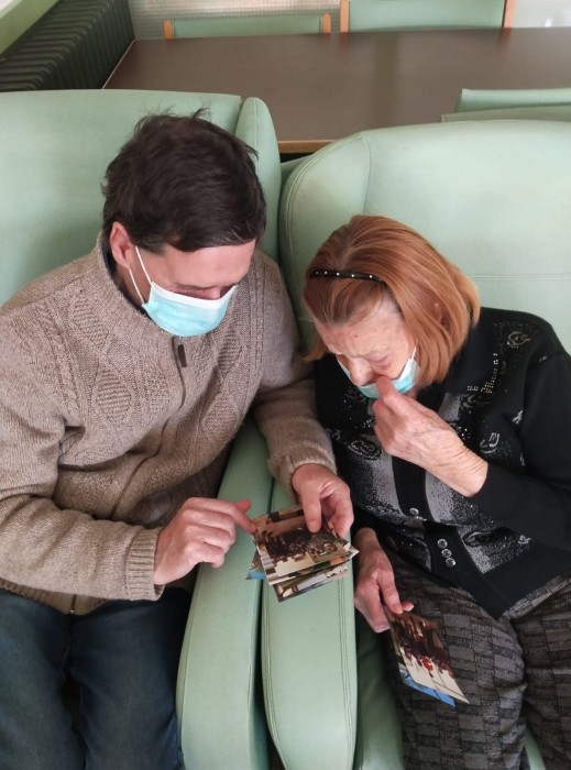 La senyora Generosa comparteix amb els seus companys fotografies significatives de la seva història de vida.Ens explica les seves vivències i anècdotes. Ha sigut molt interessant.