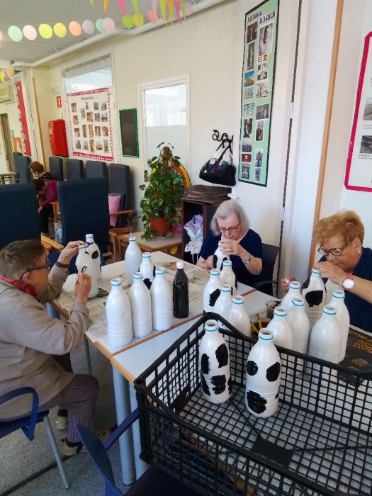 Vamos avanzando poco a poco. Hoy tocó pintar unas botellas para los juegos que se llevarán a cabo en la Fiesta por el Aniversario del Centro.