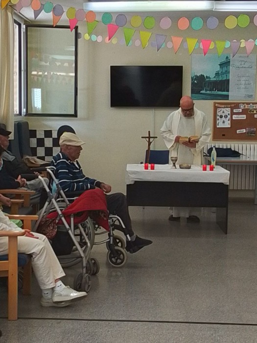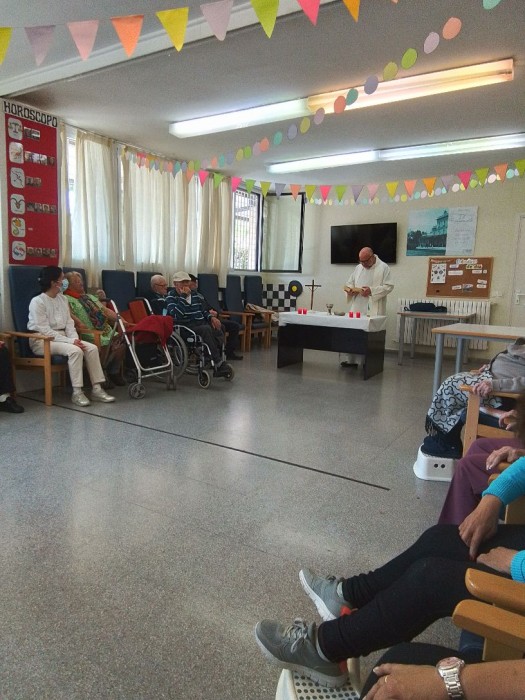 Hoy vino el padre de nuestra Iglesia de San Cosme a Celebrar la misa con los usuarios.